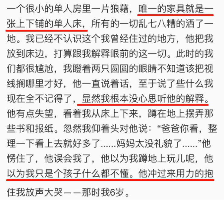 (6岁的王子文蹲在地上,摆弄遍地凌乱的书和报纸:“爸爸你看,整理一下看上去就好多了......”父亲听到这句话,愣在原地,然后抱住女儿放声大哭——他原以为她什么都不懂。)