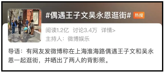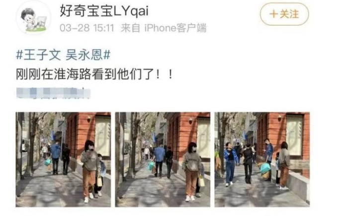 3月28日,有网友发图表示在上海新天地附近偶遇王子文与吴永恩约会。