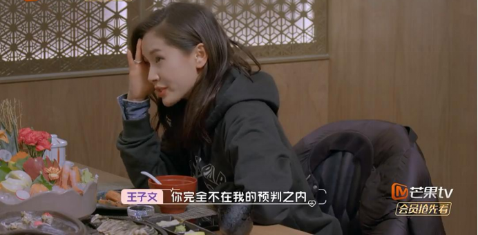 王子文在节目的最开始,就表现出了和其他女明星的不同。