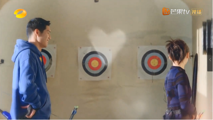 一起射箭时,因为不想王子文输了比赛不开心,他会慢慢放水,射出低分,最后让她拿下比赛,看着她得意的样子,自己在一旁傻笑。