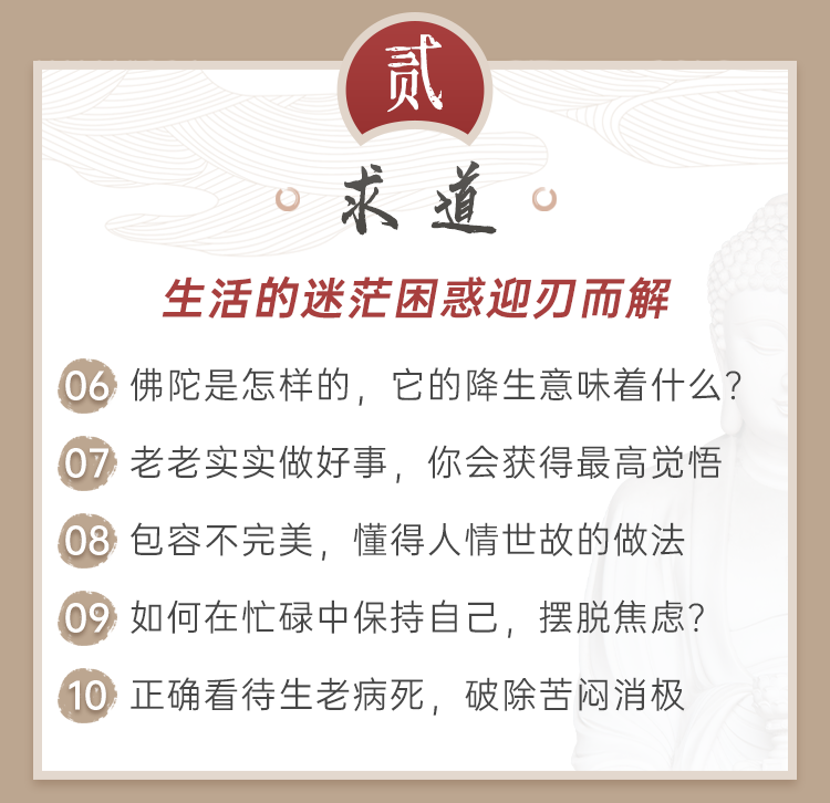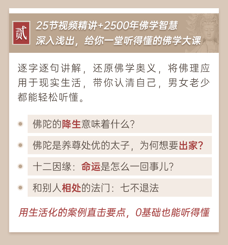 佛陀的降生意味着什么? 佛陀是养尊处优的太子,为何想要出家? 十二因缘:命运是怎么一回事儿? 和别人相处的法门:七不退法