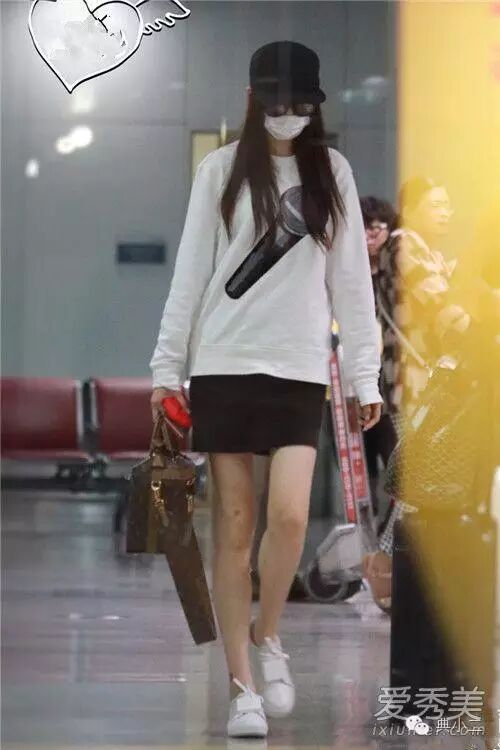 张天爱用白色宽松卫衣配红色短裙和小白鞋,扎着可爱的小辫子,清新俏皮,活力满满,拼色包包来自lv,还是很有夏天的气息。