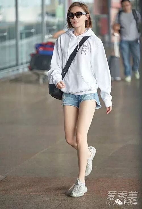 袁姗姗身着白色连帽运动卫衣加牛仔短裤,搭配简单大方,完美凸显了其两条修长的美腿。Celine太阳镜及LOEWE罗意威背包的搭配更添帅气活力。
