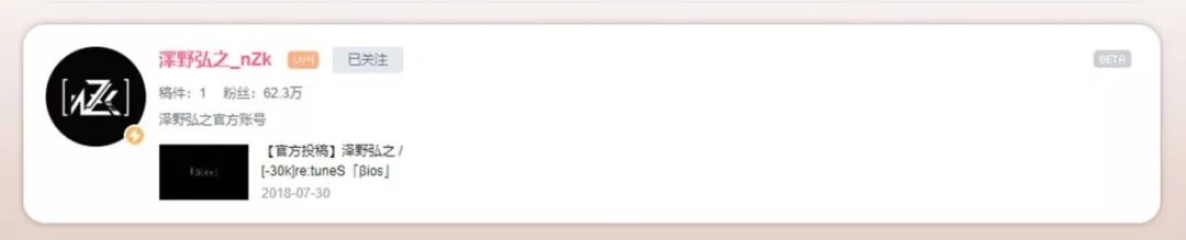 就在前几天,大家熟知的“泽野大神”——泽野弘之居然注册了B站账号,并投稿了一部作品《[-30k]re:tuneS「βios」》,立可引来了百万点击、如今已有超过60万用户关注了他。由他配乐的作品很多,比如《⑦大罪》、《巨人》、《终结的炽天使》、《ALDNOAH.ZERO》等等,