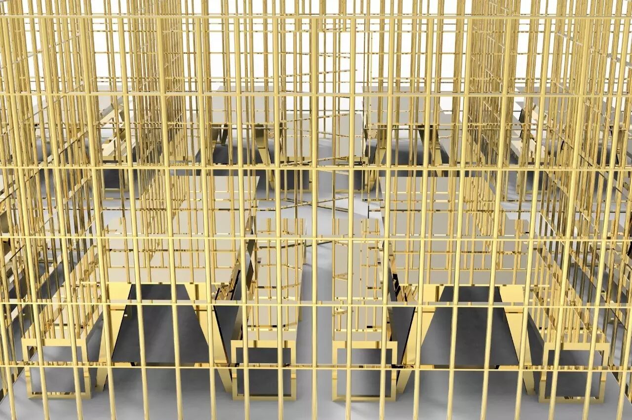美术馆将被改造成一个独特现场:观众被邀请进入到作品当中,在金色地牢笼里共进午餐,享用由艺术家亲自挑选、监制的饭菜与酒水。在这场充满仪式感和规程性的宴席,观众参与体验,并跟艺术家共同探讨社会现实等命题。