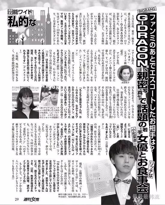 没错,Nili权志龙跟小松菜奈吃饭的事儿被媒体拍到了。