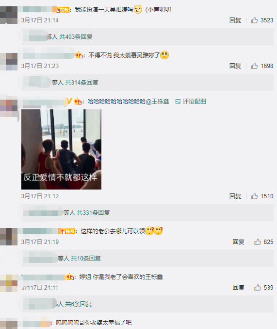 因为这一点,当时有不少粉丝都表示实在是太羡慕吴雅婷了,能不能申请做一天他身边的吴雅婷。