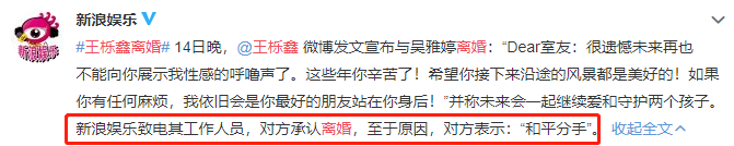 然而谁能想到,就在这个晚上,王栎鑫却忽然公布了离婚的消息。
