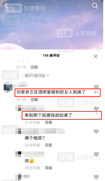 有网友在吴雅婷的抖音下评论:你家老王在酒吧要被别的女人拐跑了,看那个视频我就知道了。