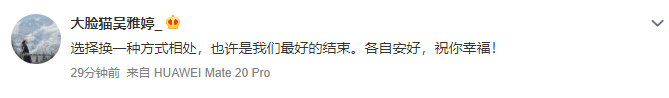 在他的叙述中,很感谢对方这一路走来的辛苦与陪伴,但是很遗憾两人决定在这一刻选择走向两条不同的路线。