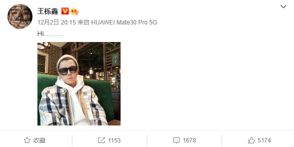 王栎鑫是一条略带些疲惫的照片,外带着一句hi~。