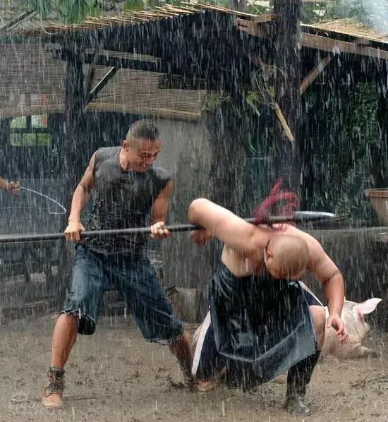 而他在其他的电影里,也是继续着“拼命三郎”的一贯风格,吃土踩粪,大小伤不断。