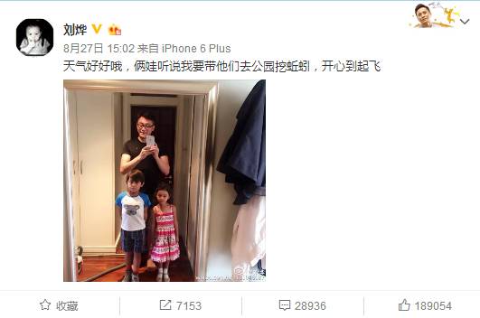 自从两娃曝光之后,他更是变身晒娃狂魔,十条微博有一半以上都是两个孩子。