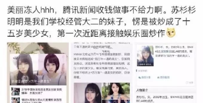 首先咱们来看看这位四万年一遇的十五岁美少女,BEJ48的成员苏杉杉,这位妹子是咱天朝的,小星挺开心,但被夸成四万年一遇,是不是有点捧杀了呢?