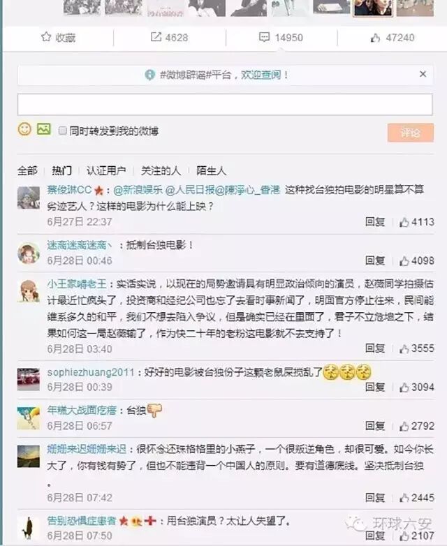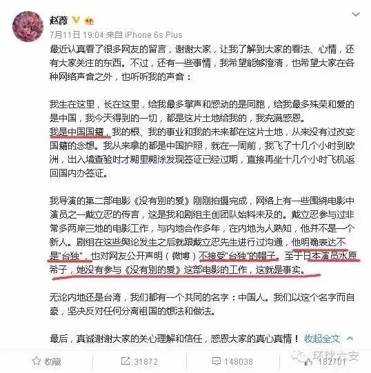 再到眼下使用台独、反华艺人,赵薇总和政治有太多牵扯。