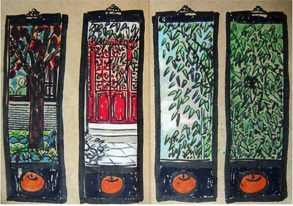 特别喜欢窦唯的彩铅画,色彩跳跃,构图紧凑,像日记一样的记录着时光和岁月。