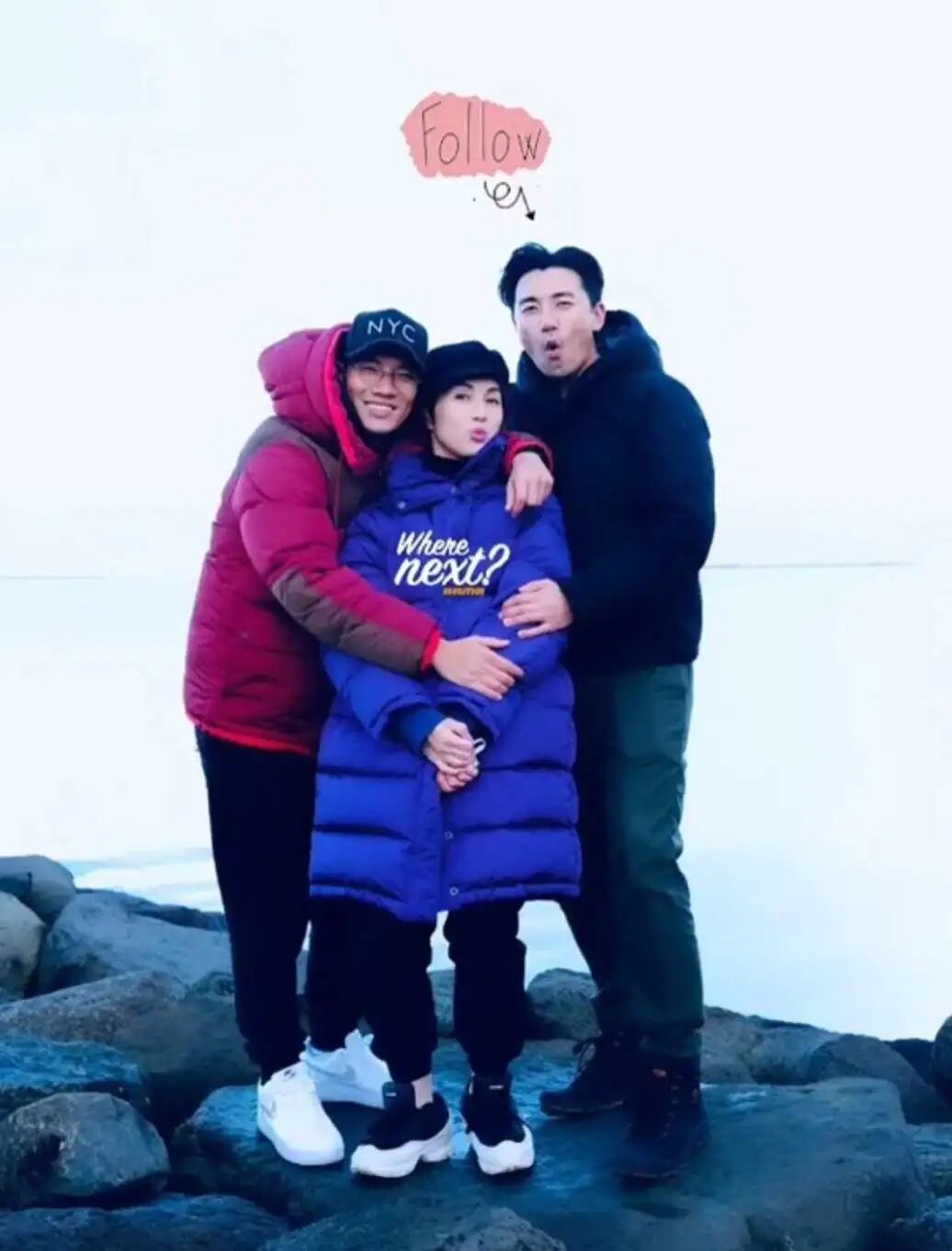 头上戴着一顶黑色的帽子,感觉这张照片还是添加的美颜和滤镜,所以会让人觉得整个人已经摆到了发光的地步,身上穿的是一件蓝色的棉袄,这件棉袄的颜色确实会比较的突出,而且下面穿了一双黑色的运动鞋。