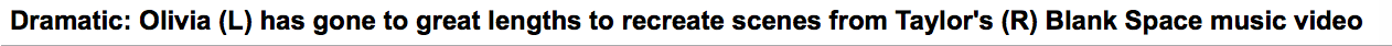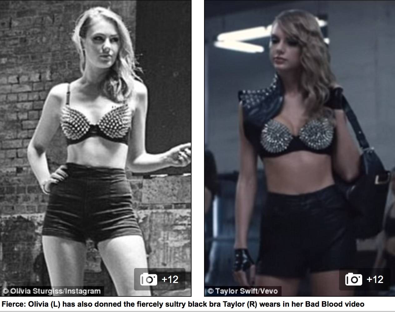 在拍摄Bad Blood的MV时,Olivia也如Taylor一般穿上了具有强烈视觉冲击效果的铆钉bra。