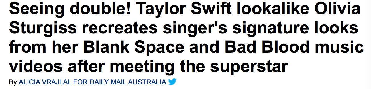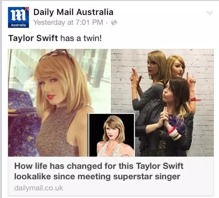 连澳洲本地媒体Daily Mail Australia都忍不住惊呼,这…确定不是Taylor失散多年的双胞胎妹妹么!