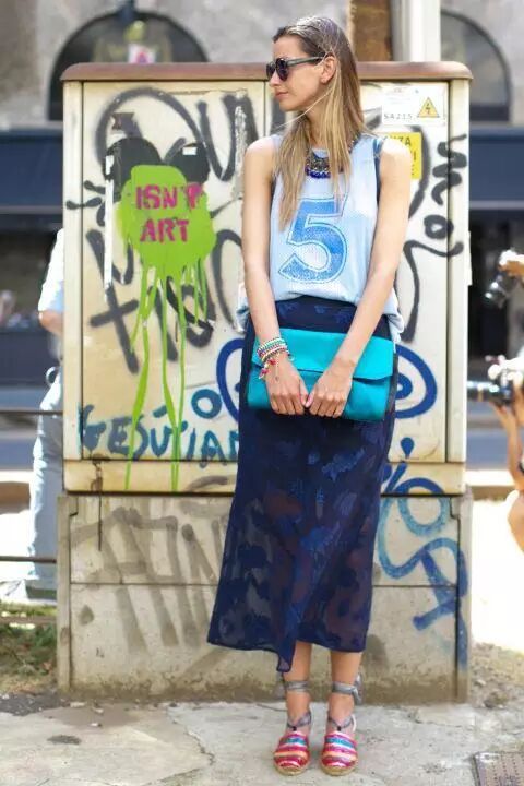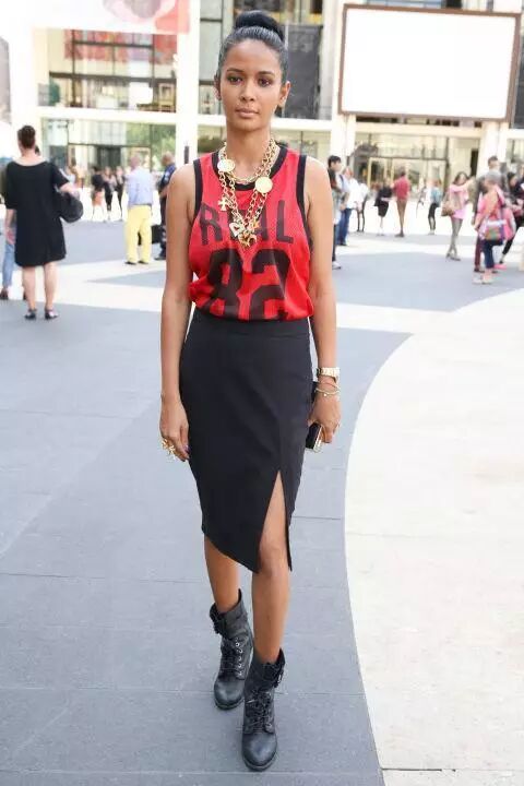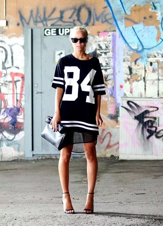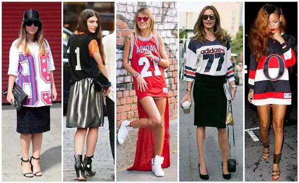无论哪种半身裙都能Hold住球衣,但是务必简洁干练些才会更协调。