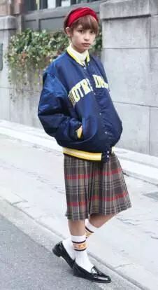 或者外搭棒球外套,混搭学妹裙当然清纯逼人。
