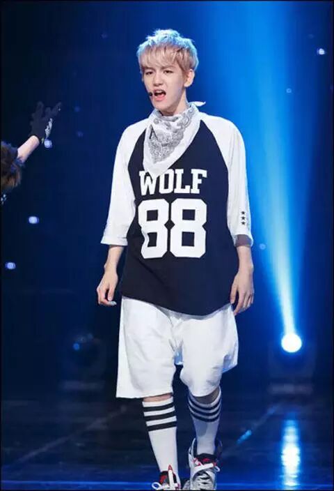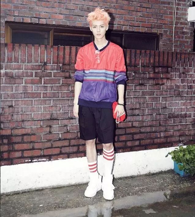 足球小子鹿晗的塑料拼色上衣与白色小袜袜浑然天成,帅气阳光。