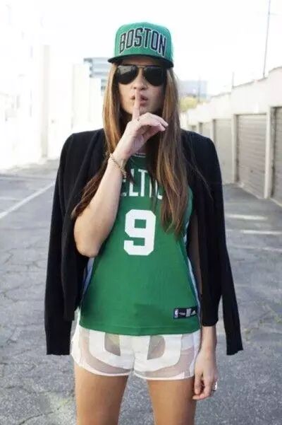 说了那么多言归正传,下面就讲讲球衣怎么穿得出彩。如果非要分得很细的话,球衣有好多种,棒球外套、篮球T恤、足球袜等等都是必需单品。