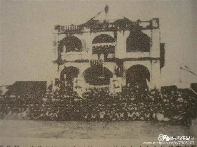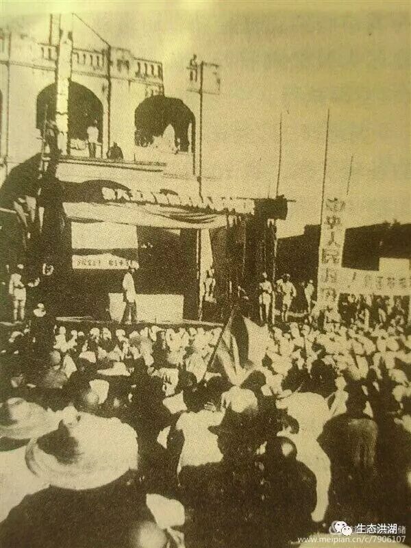 当年九月的一天,田汉先生带领抗日宣传一队,四队,八队和电影队乘着的大轮船停靠在新堤码头,他们上街到处宣传抗日,演唱抗日歌曲,掀起了洪湖抗日的高潮!