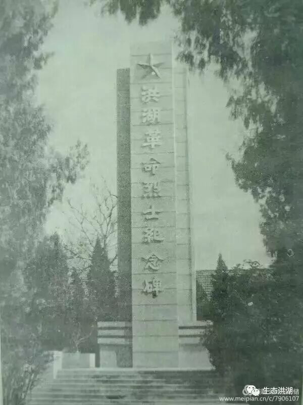 七十年代的洪湖革命烈士纪念碑,建在现在时代百货里面。那时从宝安广场到移动营业厅都是新堤公园的一部份。现在的新堤办事处是公园的假山,美迪服装城(电影院)是大型泥塑《收租院》的一排房子,太子鞋城到老中医院是灯光球场和公判大会广场。