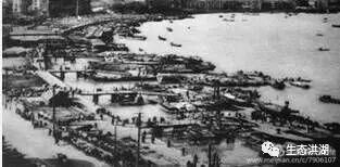 现在江边的洪湖港务局处是一个牲猪码头,湖南湖北的猪在此交易。这里都是吊脚楼街道的一部分。