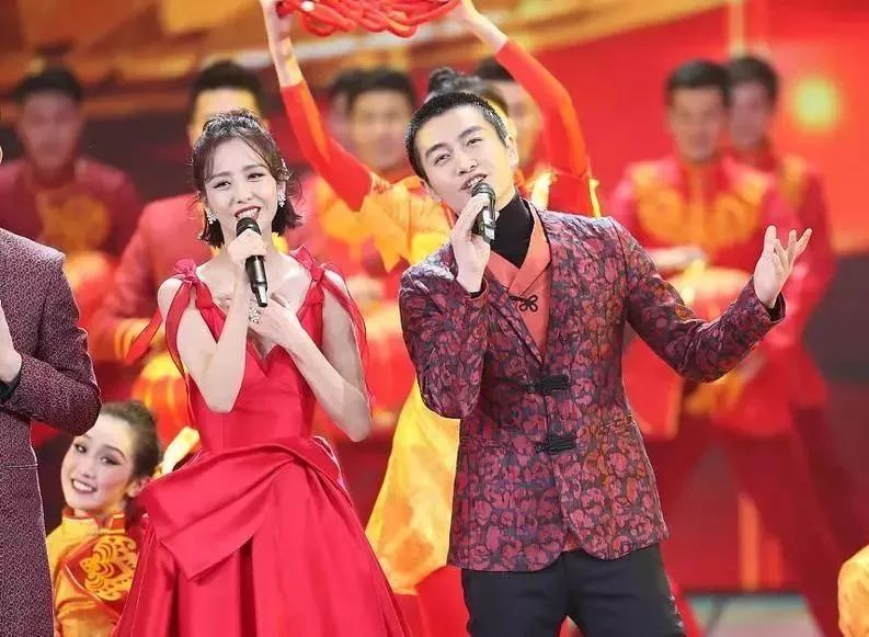 舞台上的她搭档陈晓,表演开场歌舞《万紫千红中国年》,一袭红裙配上减龄的丸子头,整个人闪闪发光。