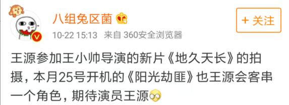 看样子,王源是有新作品要问世了,这刚传出要发新歌的消息,现在又开始拍新电影了,这孩子怎么处处给人惊喜呢!