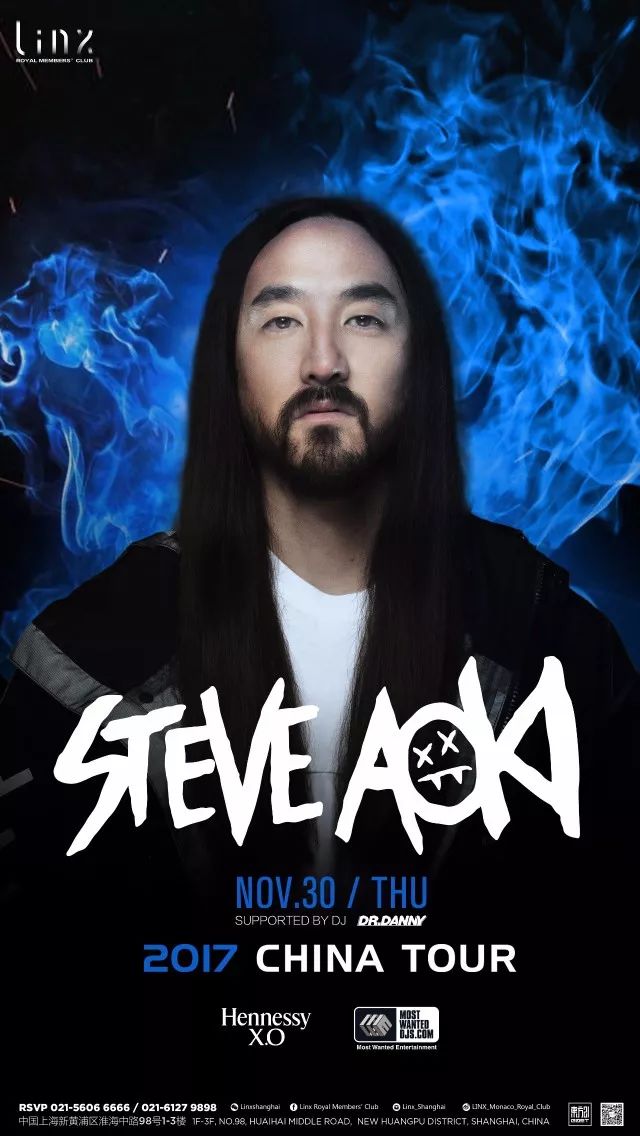 演出时间:暖场嘉宾10点开始,Steve Aoki凌晨1点开始演出