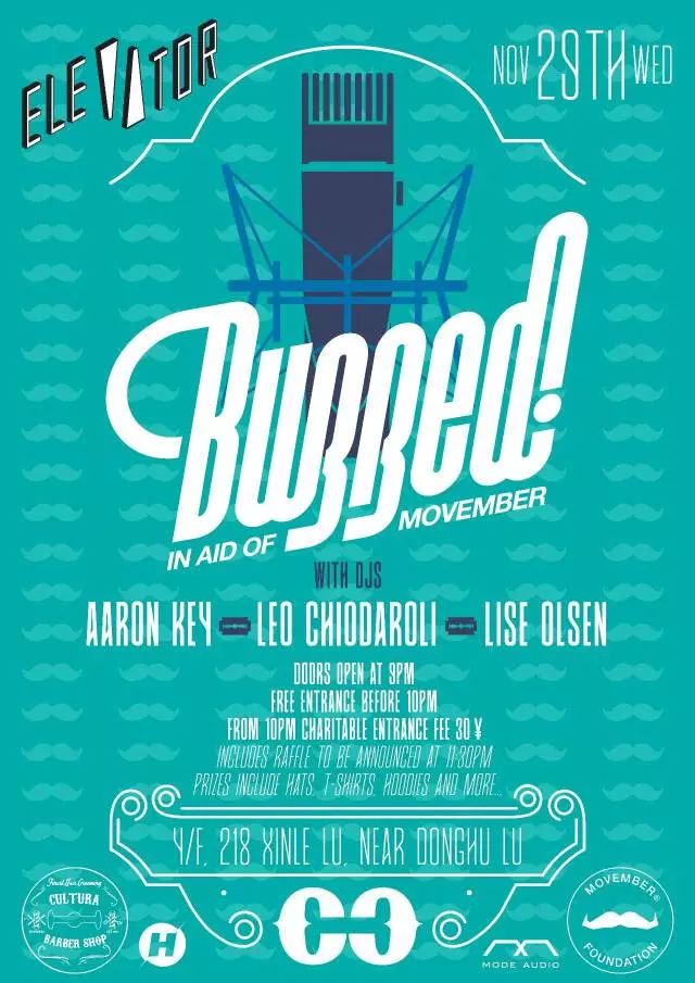 Cultura Crew本周三将在Elevator带来丰富活动,Cultura Barbershop和Tosh Yagishita携手为你带来多重奖品让你好运挡不住的BUZZED!
