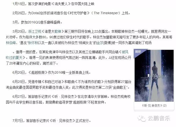 再说作品,有媒体评论说林俊杰是当时华语音乐盛世下的最后一位天王,确实是,到他这里是很明显的分水岭。