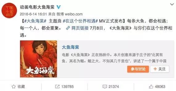 例如《大鱼海棠》就很懂得通过自己的音乐来宣传推广,无论是与陈奕迅合作主题曲,还是在发布印象曲后官方征集粉丝们的翻唱活动,都凭借音乐收获了良好的口碑和话题关注。