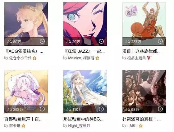 除了这些细分的专业平台,大众音乐平台的用户们也在关注动画音乐。包括网易云音乐、QQ音乐、虾米音乐等平台,用户可以自建歌单用于分享,这些平台的推荐歌单就有大量动画歌曲。