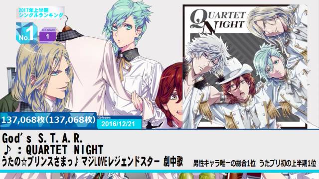 今年上半年的日本动画音乐市场,单曲销量夺魁的是TV动画《歌之王子殿下 真爱LEGEND STAR》的插曲,卖出了13万首,销售额超过1.8亿日元(约合人民币1060万元)。《冰上的尤里》专辑卖出了超过7万张,销售额近2亿日元(约合人民币1180万元)。