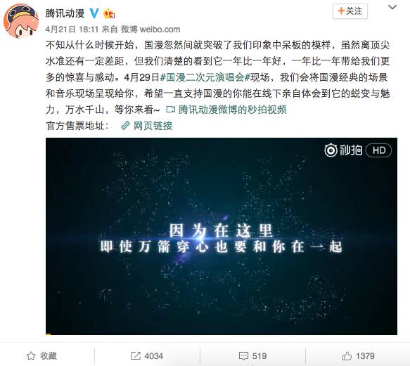 再看看国内的情况,网易云音乐、虾米音乐等大众音乐平台上,ACG音乐歌单的人气一直很高;动画通过与知名二次元音乐人合作的OP、ED、主题曲进行宣传,也已经非常常见;在线下,国漫音乐会于今年4月举办。