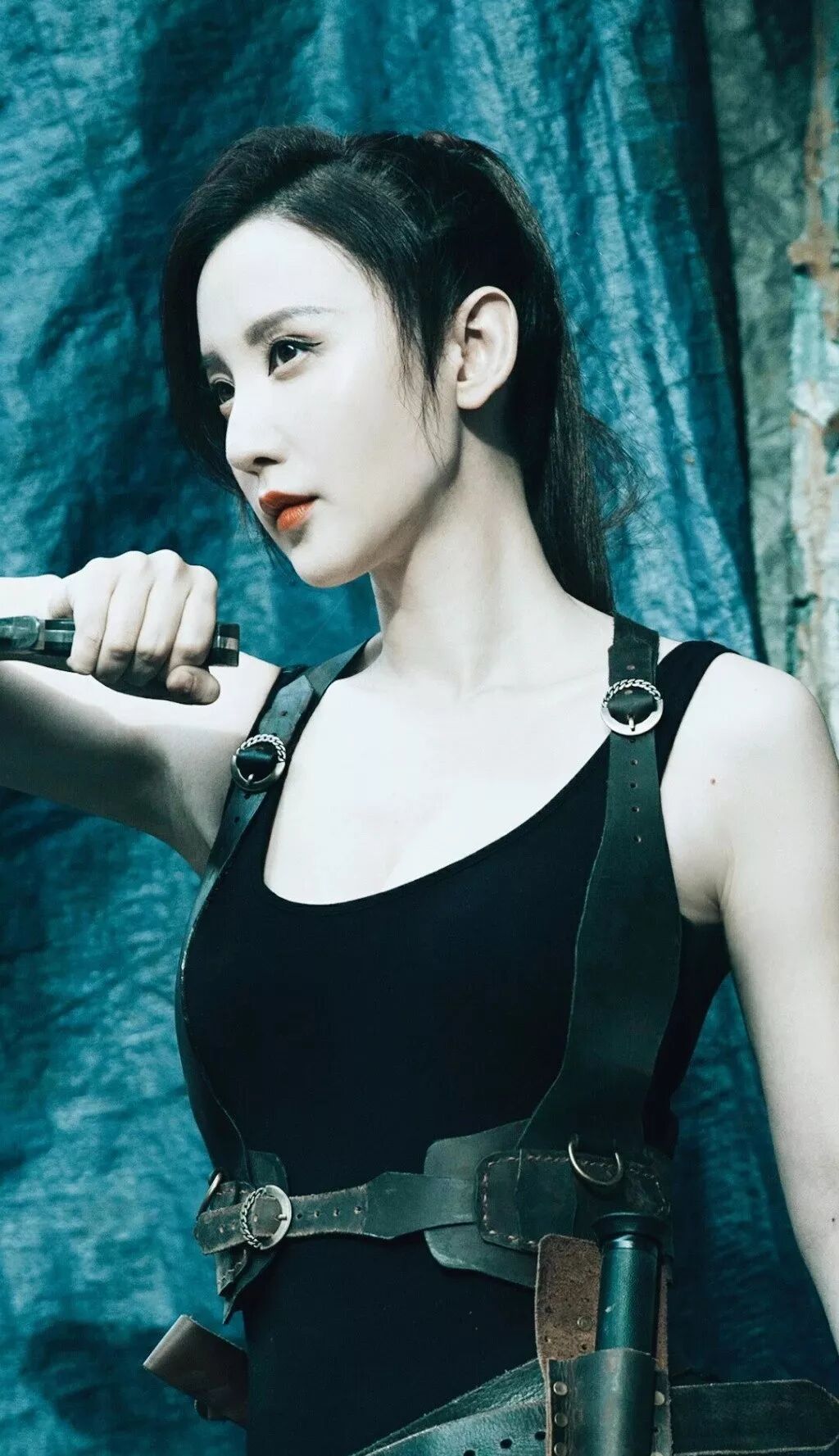 刚一出场,复古红唇加黑色皮衣,眼神中带着冷艳和不屑。