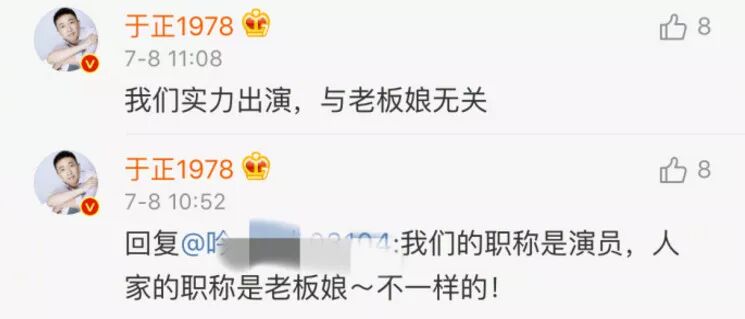 不仅正面回应,还直接艾特了于正。