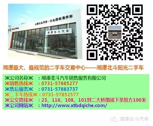上汽大众湘潭北斗4S店为上汽大众授权易手车全功能展厅,也是目前湘潭最大、最规范二手车交易中心,秉承主机厂保证、信任、可靠、透明的服务原则为您提供专业的二手车评估、置换、收购、销售、寄 售等一站式便捷服务,为您提供更周全的服务。更有多种置换大礼、优质优惠的二手车供您选择。