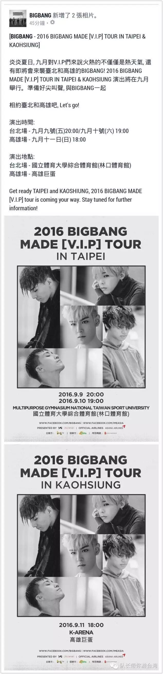 炎炎夏日, 九月對V.I.P們來說火熱的不僅僅是熱天氣, 還有即將會來襲臺北和高雄的BIGBANG! 2016 BIGBANG MADE [V.I.P] TOUR IN TAIPEI & KAOHSIUNG 演出將在九月舉行。準備好尖叫聲, 與BIGBANG一起相約臺北和高雄吧, Let's go!