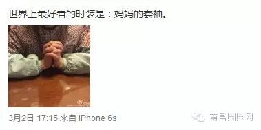 3月2号发博说世界上最好看的时装是妈妈的袖套。