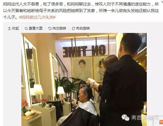 2月28号发博称自己冒着断绝关系的风险带妈妈去做头发。