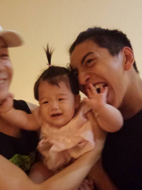 还总是痴迷的拍孩子的睫毛、睡相、哭相,出差回家被女儿热烈迎接时,眼睛都湿润了,女儿在他的怀里也是一脸幸福享受。父女之间的互动也是逗比➕温情路线。