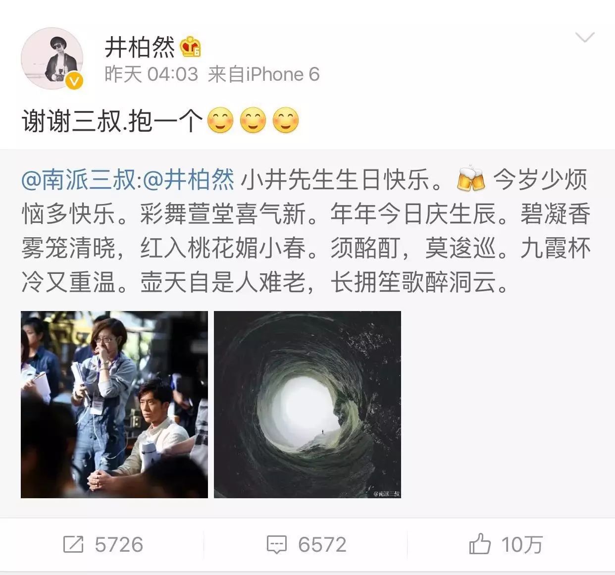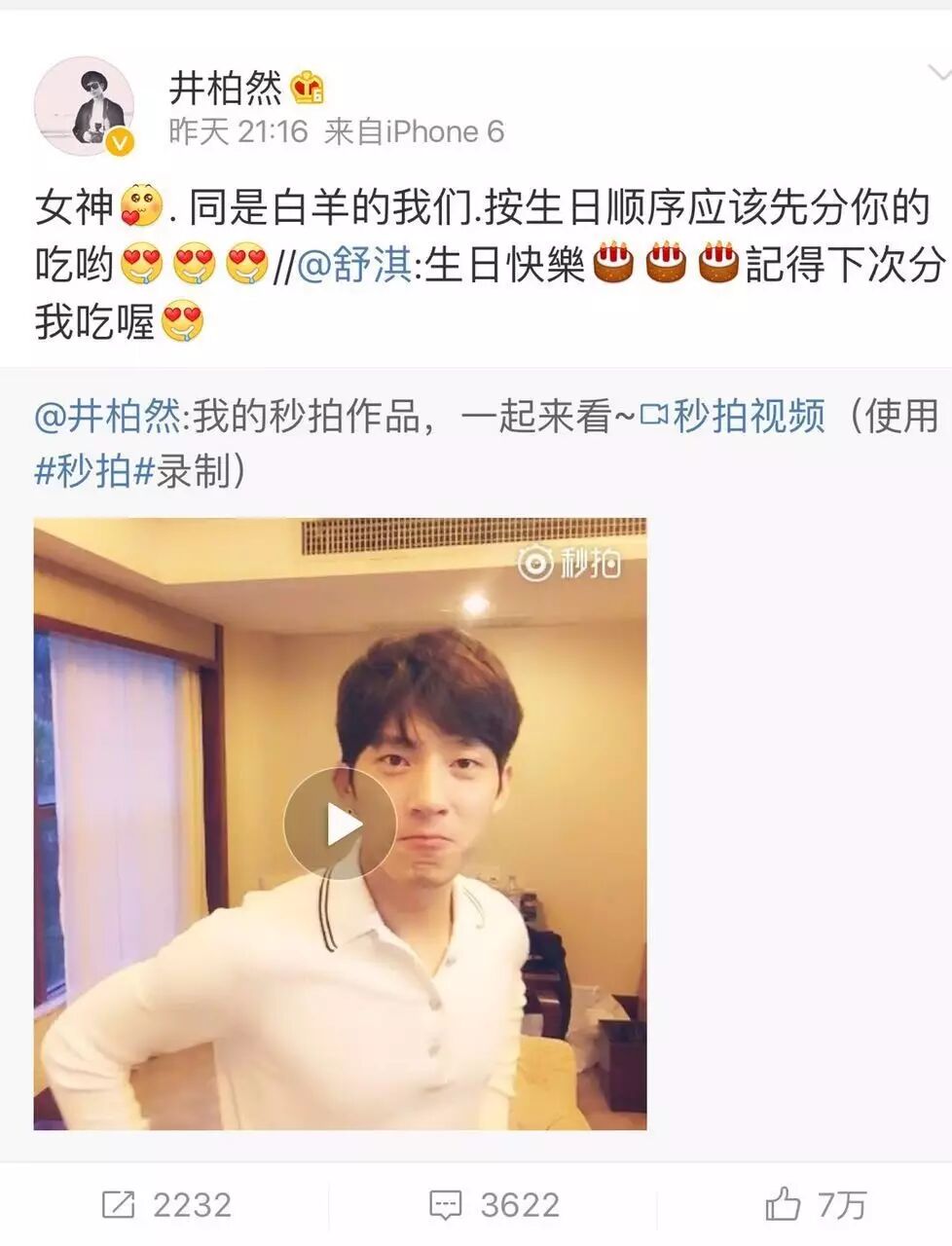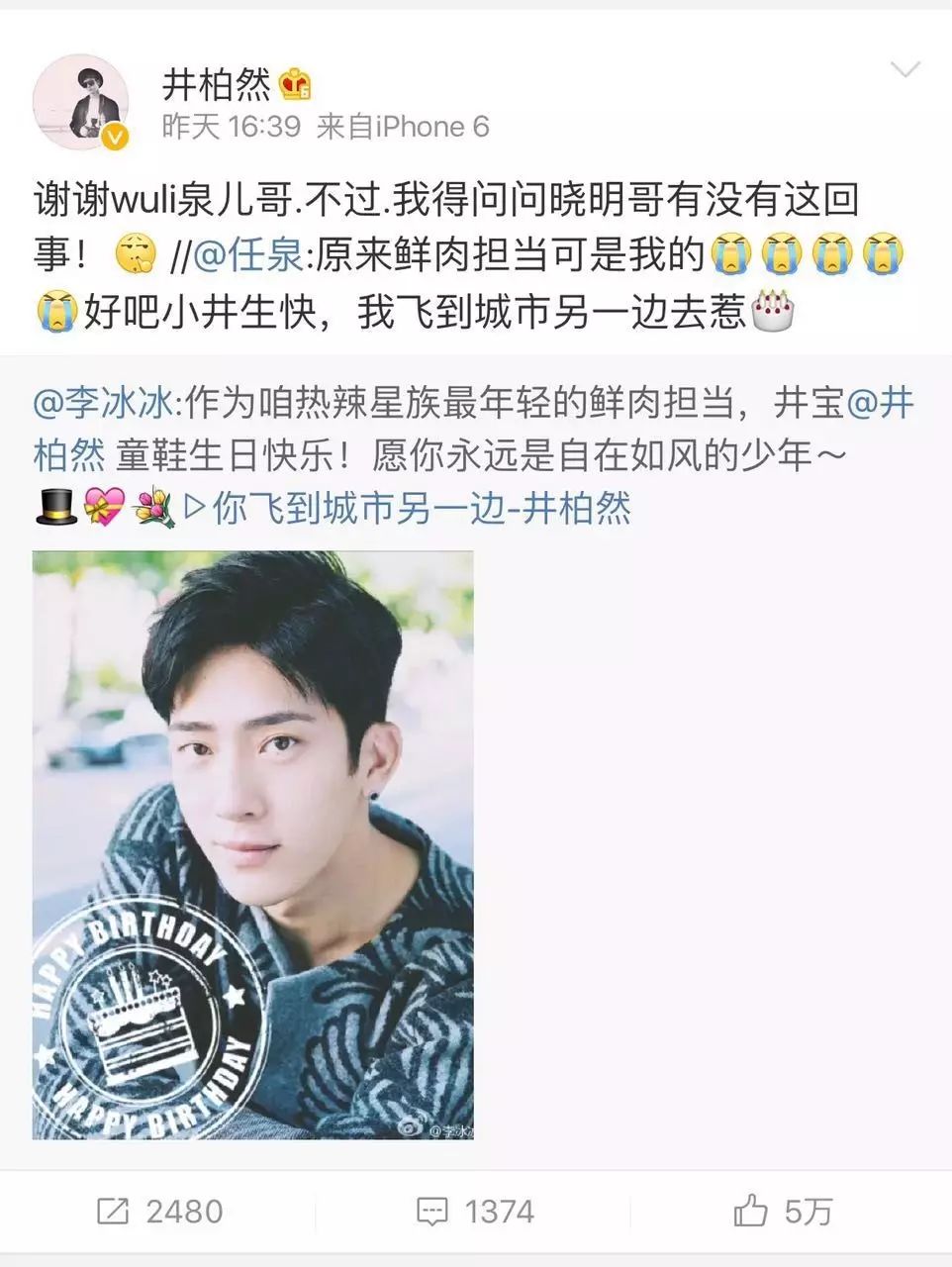 去年小井是在真人秀《花儿与少年》的录制过程中度过自己26岁的生日的,节目组为他一起庆生,这大概也是小井十分难忘的一个生日吧~
