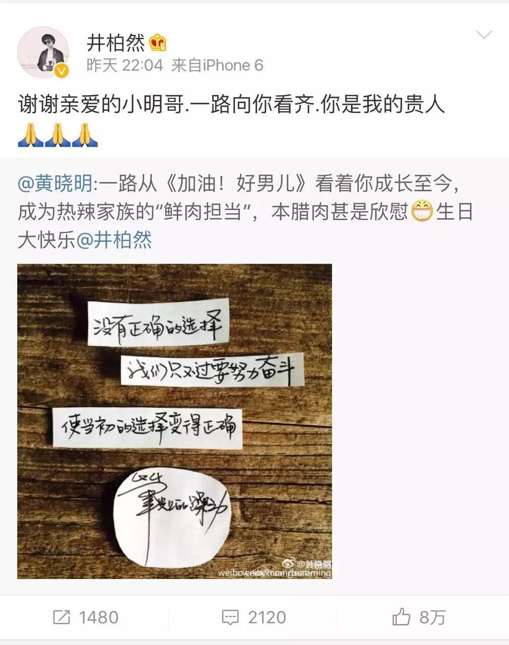 因为这档节目的播出,也让许多观众了解到原来井宝不仅人帅,还写得一手好字!看看这充满个性的“手写鸡汤”,就是出自井柏然之手哦~他的字体还被收入了字库呢~太厉害啦!