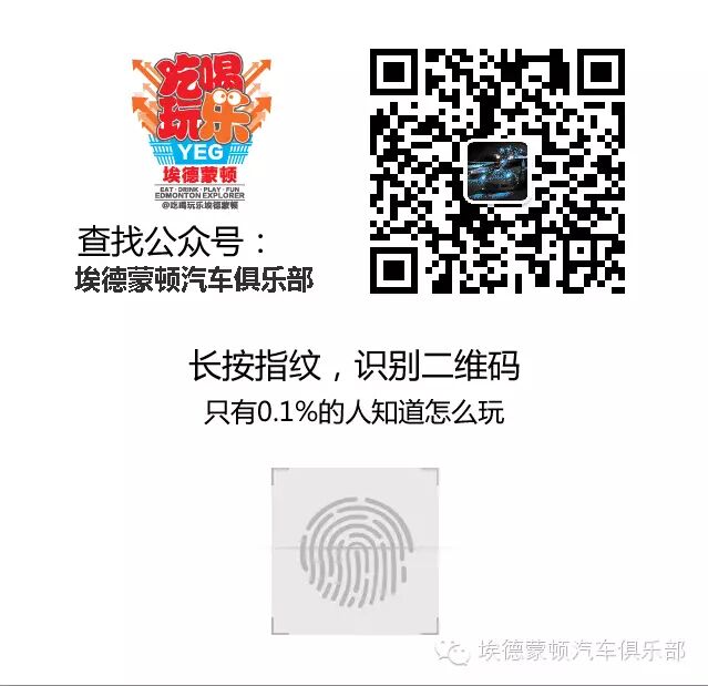 吃喝玩乐埃德蒙顿 Edmonton Explorer --- 埃德蒙顿汽车俱乐部 Auto YEG 微信平台致力于将最新汽车资讯,新闻,购车优惠以及二手车平台呈递给广大华人朋友。欢迎站内信或者加微信Logan_Fang,交流信息或投稿。