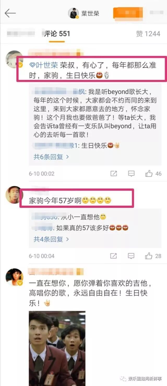 6月10号的今天,是黄家驹57岁冥诞,所以刚过零点,beyond乐队的好兄弟黄家强、叶世荣就踩点为队友、兄弟黄家驹发文缅怀,其中叶世荣说:“家驹生日快乐”,随后黄家驹的亲弟黄家强也发文:“二哥生日快乐,各位可爱的粉丝们,快来唱生日歌”。